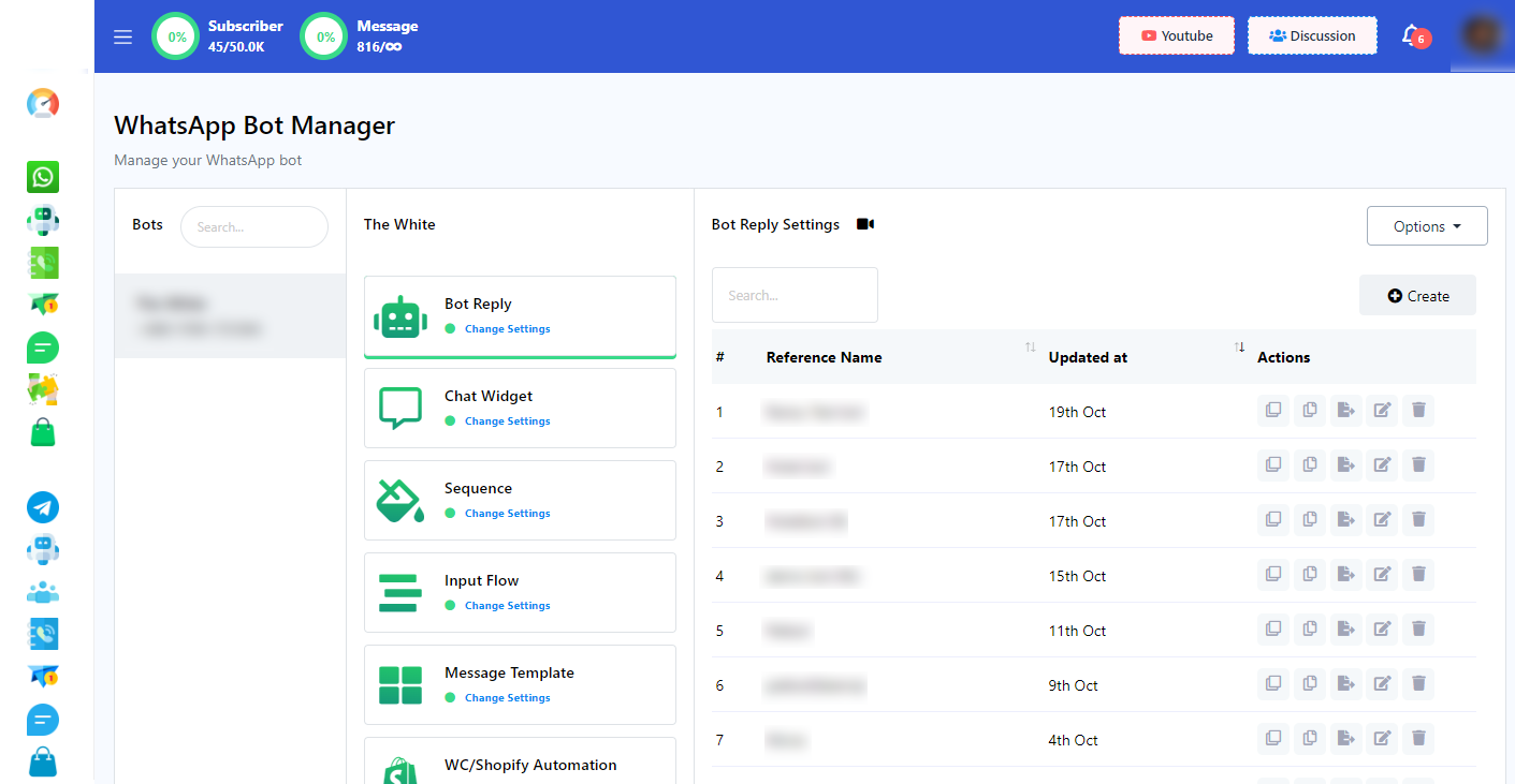 Access the Bot Manager from the dashboard’s left side menu and head to the `Bot Reply` option. In the upper right-hand corner, there`s a `Create` button.Simply tap on the `Create` button, making sure you`ve selected the `Bot Reply` option.