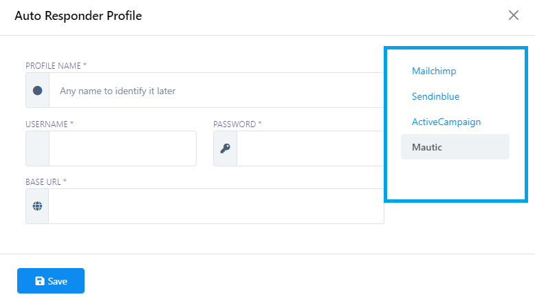 3. Select the auto responder service you want to use.