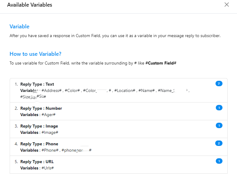 Custom Variables: Within the `Options` menu, you`ll find instructions on how to use custom variables and a list of available custom variables for your convenience.