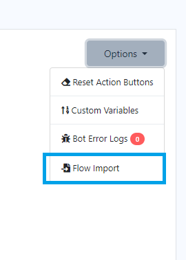 2. Navigate to the Configure section and click on `Flow Import` from the Options drop-down menu.